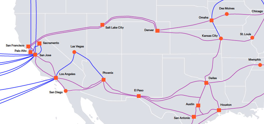 The latest expansion also provides new options to serve Mexico, tying together key growth markets across the southwest and providing more capacity to content, application and cloud providers in this region. The system serves customers at access points in El Paso and San Diego with new connectivity options, providing more capacity and diversity to support international development in Mexico.